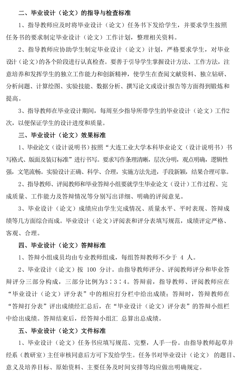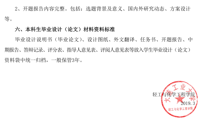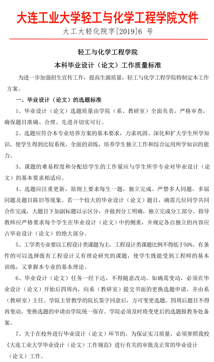 英国365公司官网本科毕业设计(论文)工作质量标准(大工大轻化院字[2019]6号)