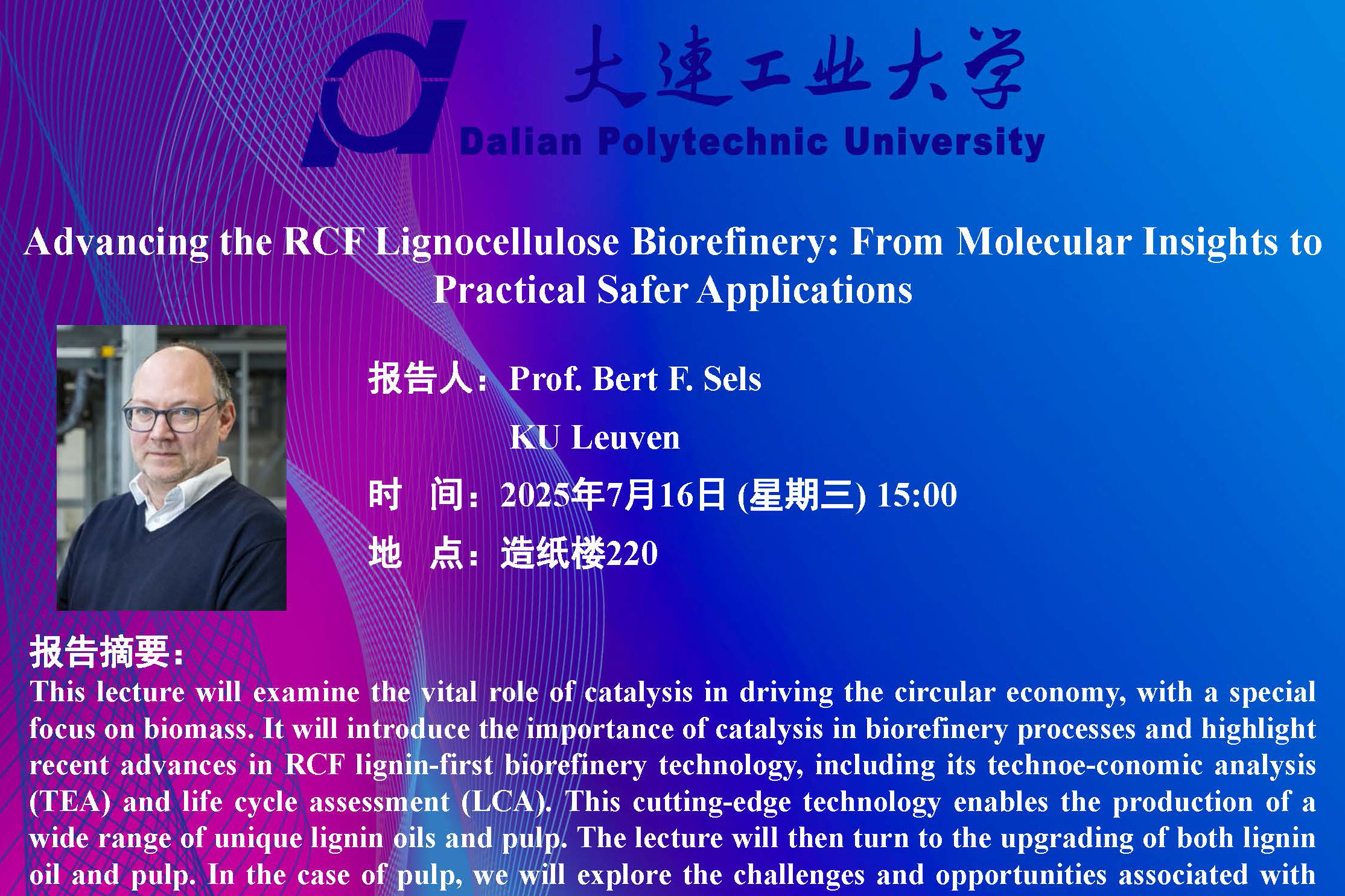 主题:Advancing the RCF Lignocellulose Biorefinery: From Molecular Insights to Practical Safer Applications报告人:Bert F. Sels,比利时鲁汶大学教授,欧洲科